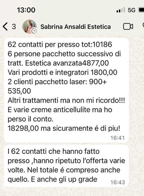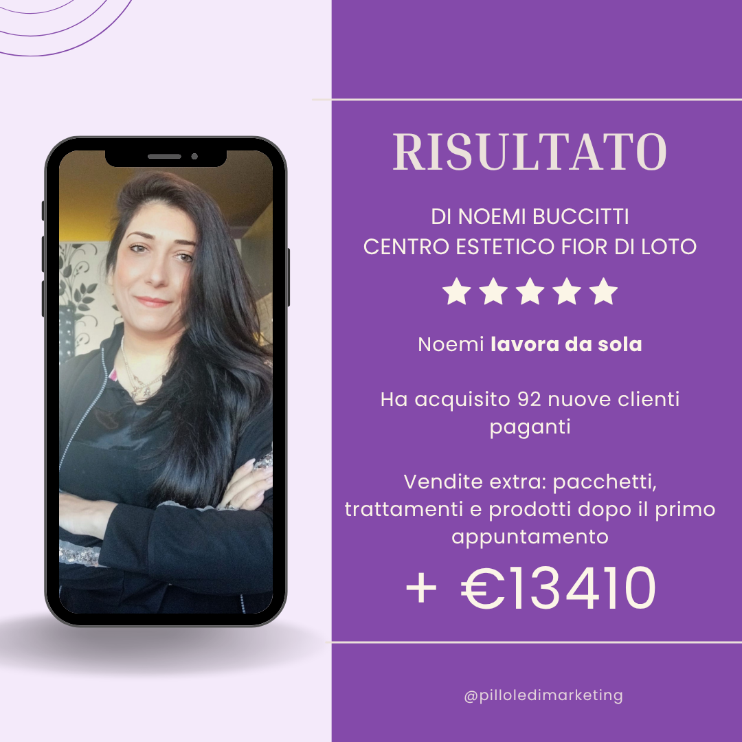 Dipende dal tuo centro e da come applichi il sistema. Alcune estetiste hanno generato oltre 10.000€ in tre mesi, ma ogni situazione è diversa. Per questo c’è una fase iniziale di valutazione.